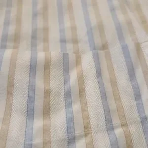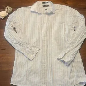 Kenneth Roberts Platinum men's long sleeved dress shirt size 34/35, 17 neck. White, blue, tan vertical stripes. Great condition.