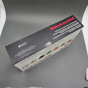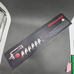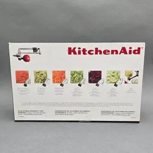 Transform your KitchenAid stand mixer into a versatile culinary tool with this New-In-Box Spiralizer Plus. Featuring 7 interchangeable blades, this attachment allows you to peel, core, and slice fruits and vegetables with professional precision, making healthy, vibrant meal prep effortless.