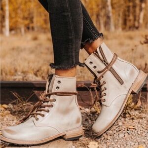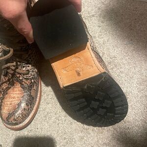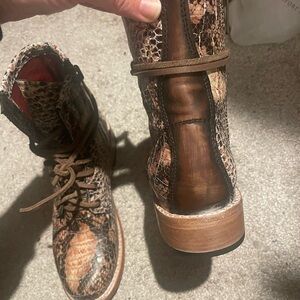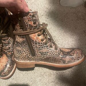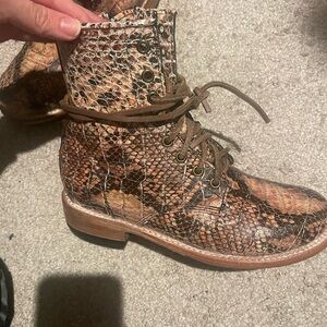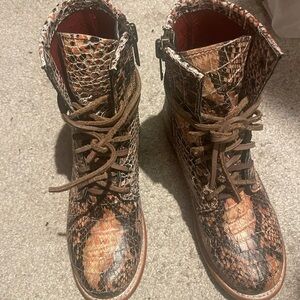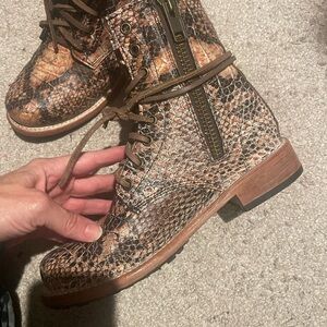 Freebird by Steven Manchester Snakeskin Combat Boots - Brown and Blush