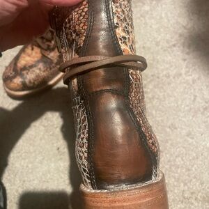 Stylish snakeskin pattern. Lace-up design. Genuine leather, handmade. Fun, edgy addition to your closet