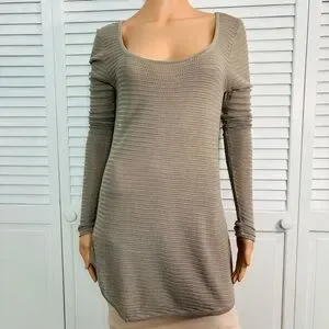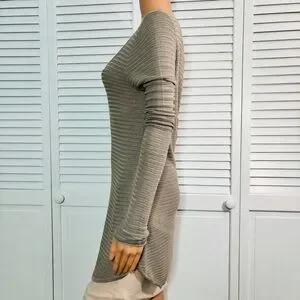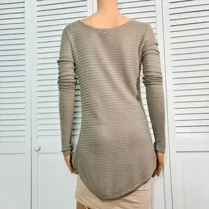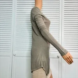 EXPRESS Tan Semi Sheer Asymmetrical Hem Long Sleeve Shirt Size Large