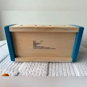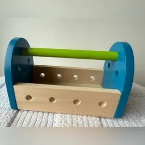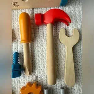 Hape Fix-It Wooden Tool Box. Missing only one red bolt. Smoke free home.