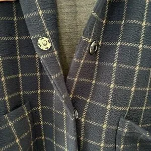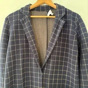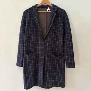 Anthropologie Harlyn Navy Plaid Jacket – Size Small – Snap Front – Mid Length