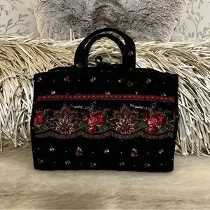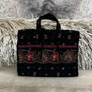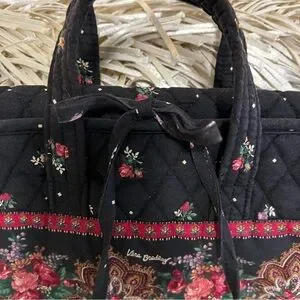 Vintage VERA BRADLEY 1997 Trifold Travel Hanging Toiletries Bag Black Red Roses