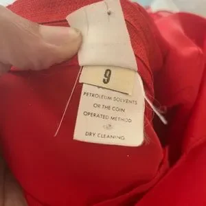 Absolutely captivating! Perfect for photo shoots or a fun night of dancing! It’s in great condition! The bow in the back is a show stopper…along with the design up the back of the skirt. Just lovely! I believe this gown is vintage as the tag is so faded I can hardly read it. Model wears between a 2-4 and it’s a little big. A few stains at the bottom skirt but hardly noticed them.
