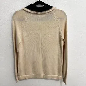 LRL Ralph Lauren Jeans Women's L CreamHalf Zip Knit Foldover Sweater Pullover