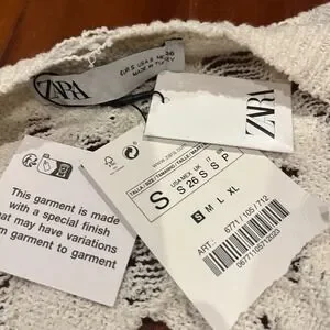 ZARA Cardigan Sweater Knit Cream Beige Distressed Button Front Long Sleeve New Size Small