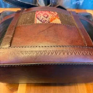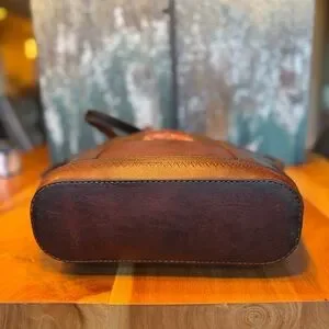 Vintage Artisanal Inca Sun Leather Tote Bag Made in Bolivia