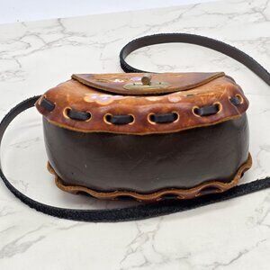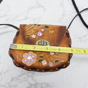 Small Mexican Leather Crossbody Bag Mini Brown Floral Butterfly Tooled Boho