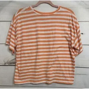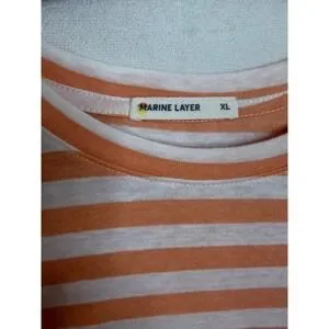 Marine Layer Womens XL Orange White Striped Short Sleeve Pocket Tee Shirt