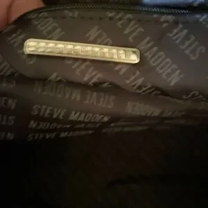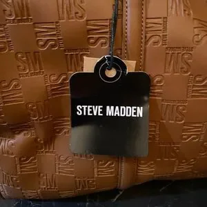 The interior is lined with fabric in a gray color, and the hardware is made of silver. The bag is part of the Steve Madden product line and is suitable for both men and women. This weekender duffle bag is a must-have for anyone who wants to look stylish and organized on the go