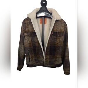 Levi's Corduroy Tan and Brown Plaid Sherpa Jacket