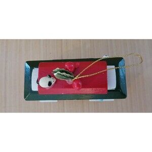 Dog on Choo Choo Train Christmas Ornament Wooden Holiday Tree Decoration