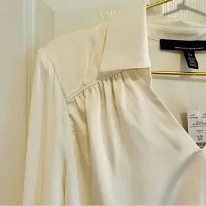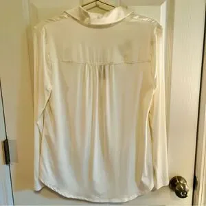 Chic cream blouse with a classic V-neck. Long sleeves and elegant design. Perfect for versatile styling.