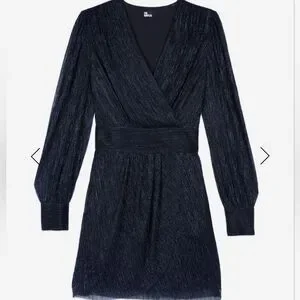 The Kooples women's dress in size 2 US. Navy blue metallic jersey material. Brand new with tags. The model measures 177 cm and is wearing a size 1.