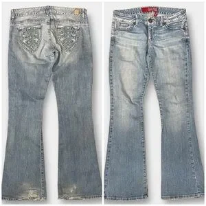 Guess Vintage Daredevil Flare Jeans Embroidery Size 29
