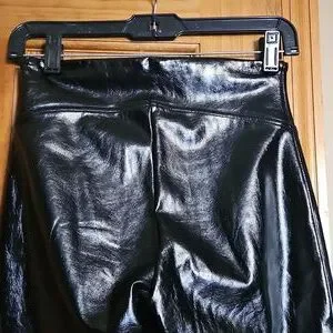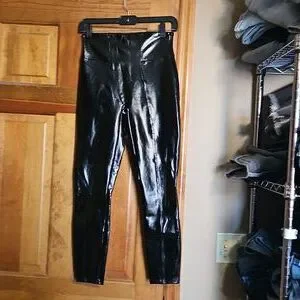NWOT Spanx by Sara Blakely faux leather black skinny high-rise pants with stretch. Sleek black versatile high-shine vegan leather leggings. New without tags.