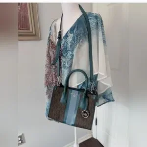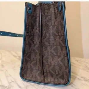 Michael Kors Brown Satchel with Teal and Light Blue Trim