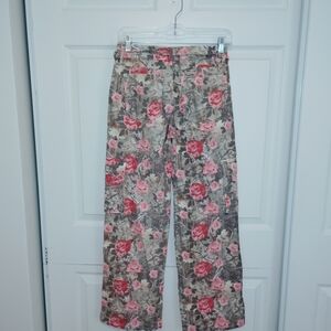 Riley And James Floral Wide Leg Pants in Pink & Tan.