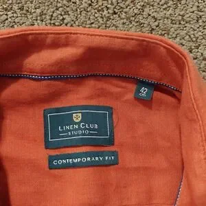 Linen Club Studio Mens Contemporary Fit Linen Cotton Blend Button Up Shirt 42cm