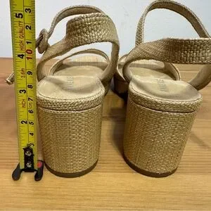 Anne Klein Raffia Block Heel Sandals Natural Beige Ankle Strap Size 10