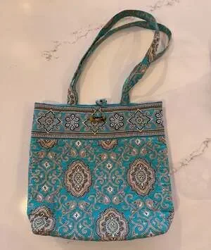 Vera Bradley Totally Turquoise Quilted Tote Bag, Featuring the Classic Paisley Pattern — A vibrant and functional accessory for everyday use.