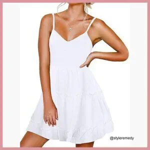 A relaxed, flowy babydoll dress featuring a sexy v-neckline and backless design. This A-line swing dress is perfect for casual summer occasions, beach days, or vacation wear, offering a comfortable and stylish look with the practicality of side pockets.