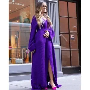 HANIFA MIYA KNIT CARDIGAN DRESS IN EGGPLANT /PLUM