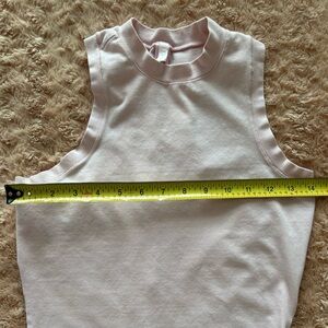 SKIMS Women's Light Pink Sleeveless High Neck Bodycon Mini Dress Size Small / Petite; In great condition with the exception of a light discoloration on the bottom, left-hand side of the front…But barely noticeable & does not compromise the look of this casual and comfortable mini dress; Please see all pictures; From a nonsmoking home🤍