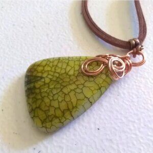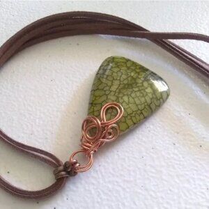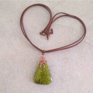 Handmade Copper Wrapped Green Agate Pendant • Vegan Suede • Boho Necklace