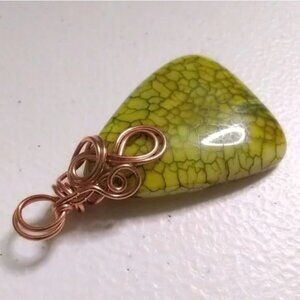 One-of-a-kind handmade pendant featuring a vivid green Dragonvein Agate wrapped in warm copper jewelry wire.