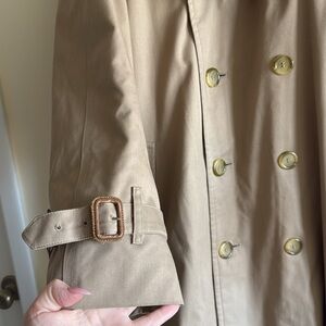 Vintage Burberry Tan Nova Check Plaid Lined Double Breasted Tie Trench Coat