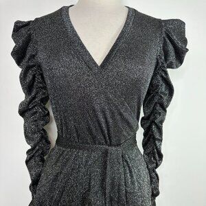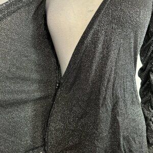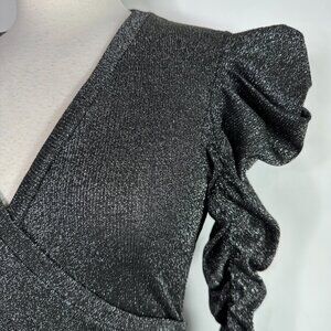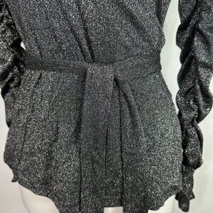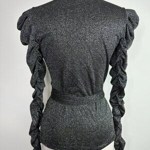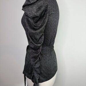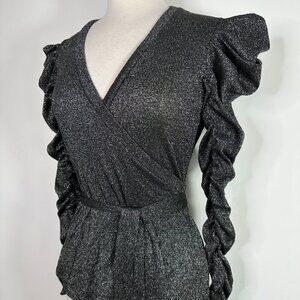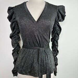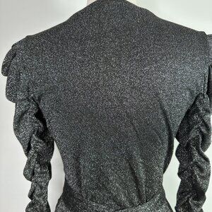 Walter Baker Marwin True Wrap Top Black Silver Sparkle Size Small Ruched Sleeve.