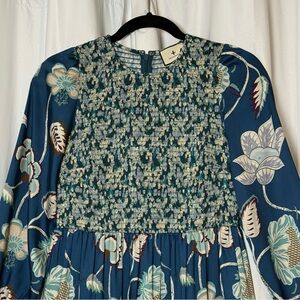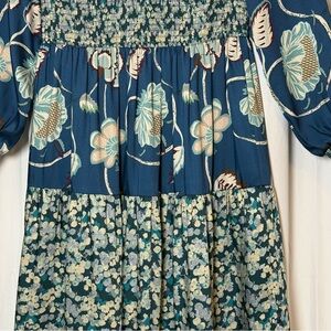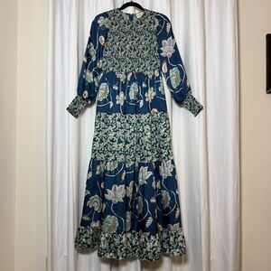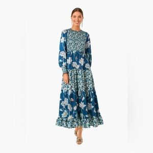 Tuckernuck Libby Floral Maxi Dress Blue Geranium Smocked Small