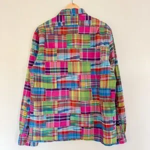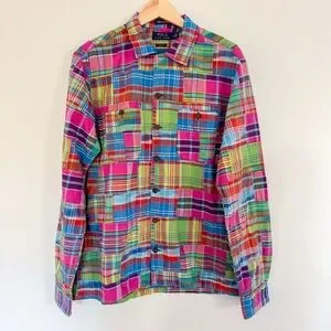 Polo Ralph Lauren Classic Fit Patchwork Madras Camp Shirt 100% Cotton Medium