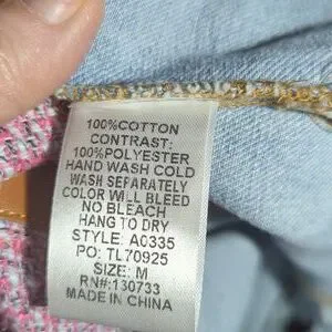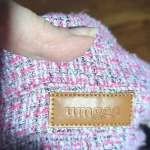 Umgee Tweed Jacket Pink/ Blue Denim Fringe Hem Cotton Hippie Festival Sz M