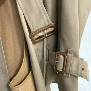 Features a detachable wool liner, making it perfect for both cooler and transitional weather. Comes with original belt and sleeve buckles, and the classic double-breasted silhouette.