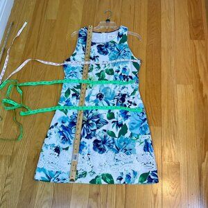 Eliza J Dress Sheath Tank Style Floral Blue Green Cotton Spandex (12)