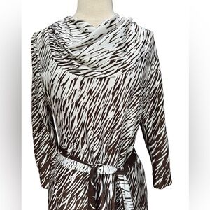 1970s ILGWU Poly Cowl Dress w/Matching Belt in excellent used condition. Measurements: bust 37”/arm length 27”/waist 30”/hips 38”/length 42”