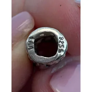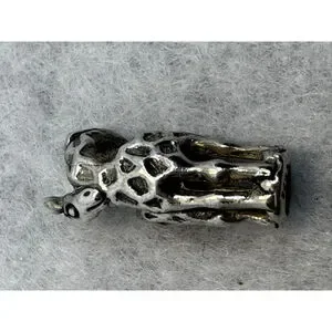 This pre-owned set includes two silver-toned animal charms. One charm depicts a giraffe with a textured, spotted body, measuring approximately 2.5 cm in length. The other is a rectangular charm featuring a lion's head with a detailed mane, measuring about 1.5 cm in length. Both charms have a hollow center for threading onto a bracelet. The giraffe charm is marked "LAA" and "925," while the lion charm is marked "925," indicating sterling silver. The combined weight of the two charms is 5 grams.