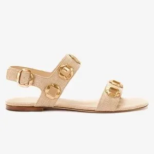 We never saw metal hardware we didn't love and the new Milan flat sandal is no exception. With a iconic Italian look and feel, chunky chain detail embellishes the straps of this soft raffia standout sandal with the most comfortable base for all day (and night) wear.