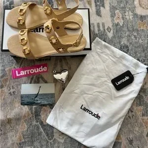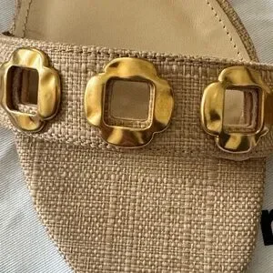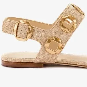 **NIB** Larroude Milan Flat Sandal In Beige Raffia