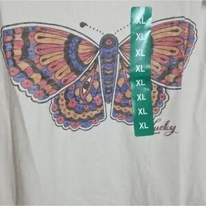 Lucky Brand Women's Butterfly Graphic T-Shirt sz XL NEW Casual Cozy Soft Nature