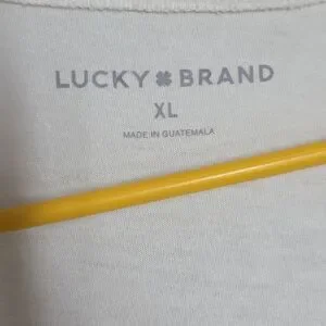 The Lucky Brand Women's Butterfly Graphic T-Shirt in size XL is a casual and cozy top perfect for any casual occasion. Made from soft cotton material, this tee features a nature-themed design with a crew neck and short sleeves, making it lightweight and breathable for all seasons. The marshmallow color and butterfly graphic add a cute and nature-inspired touch to the basic style of this regular fit t-shirt. Machine washable for easy care, this new addition to your wardrobe is sure to become a versatile and stylish staple for your summer, fall, and spring outfits.