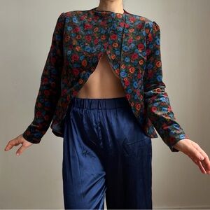 Stylish floral patterned jacket with vibrant colors. Perfect for adding a pop of color to any outfit.