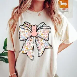 Funny Bunny Easter Tshirt, Easter Rabbit Bow Gift Tee