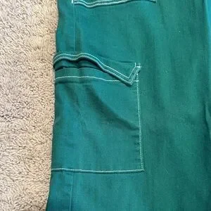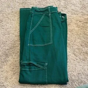 Chic green straight leg pants. Features stylish stitching. Ideal for casual wear.