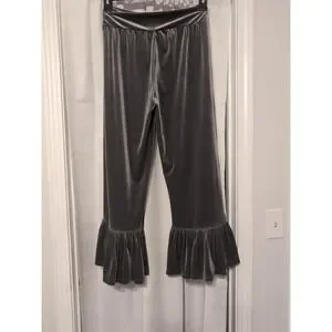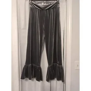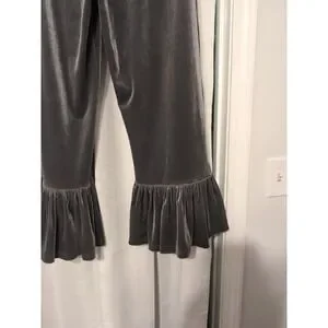 NWOT Matilda Jane Gray Velvet Cropped Ruffle Pants Sz M Boho, Cottage, Hippie