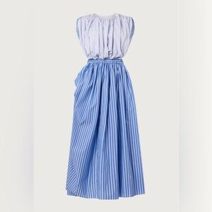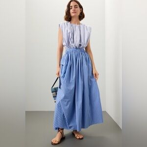 Elegant blue and white striped maxi dress. Perfect for summer occasions or the Kentucky Derby. Good condition, but needs steamed.