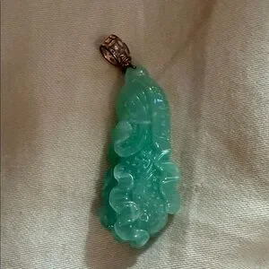 This elegant green jadeite pendant necklace adds a touch of sophistication to any outfit. Perfect for any occasion. Free chain with purchase on pendant.